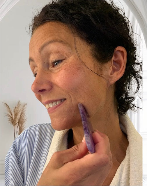 I sortimentet hittar du både Gua Sha-stenar och klassiska rollers i jade, rosenkvarts och ametist – alla utan kemisk behandling, infärgning eller syntetiska tillsatser.
