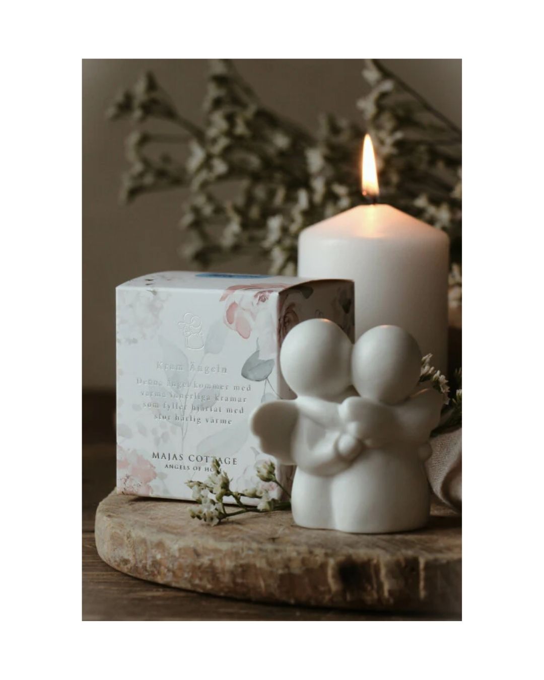 Kram Änglarna i gåvobox från Majas Lyktor är en innerlig gåva fylld av kärlek, tröst och omtanke. De två vita keramikänglarna håller om varandra i en öm kram – en vacker symbol för närvaro, värme och vänskap.