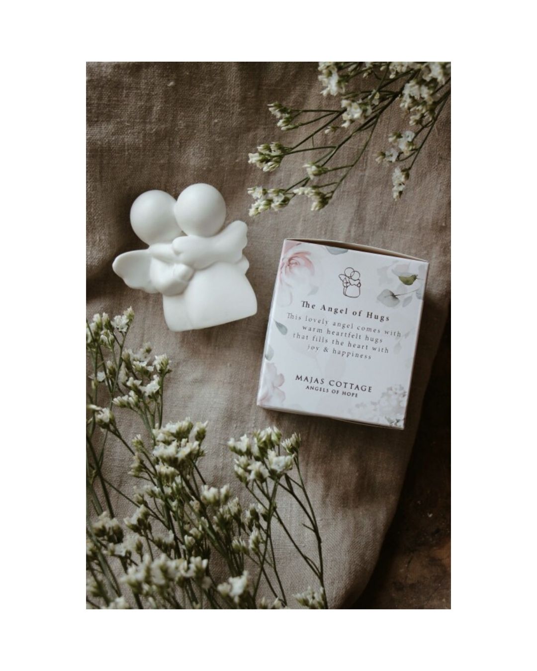 Änglarna kommer i en fin blommig gåvobox med texten:
