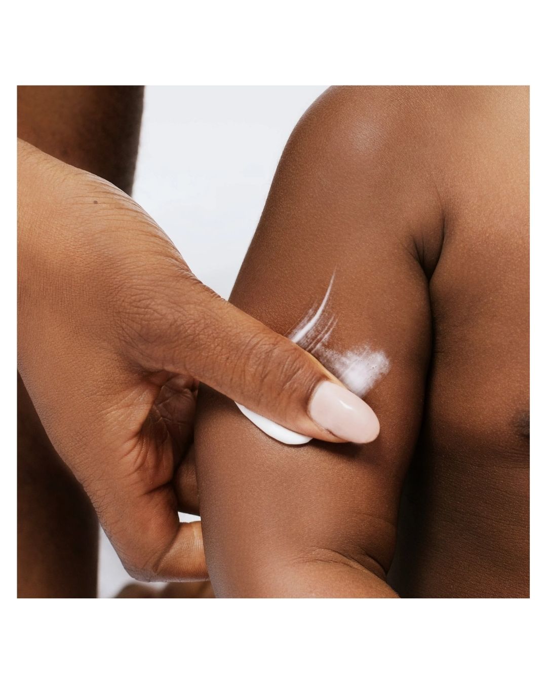 Krämen passar lika bra för kroppen som för ansiktet och är enkel att applicera – bara en liten klick räcker för att lugna och skydda torr hud.