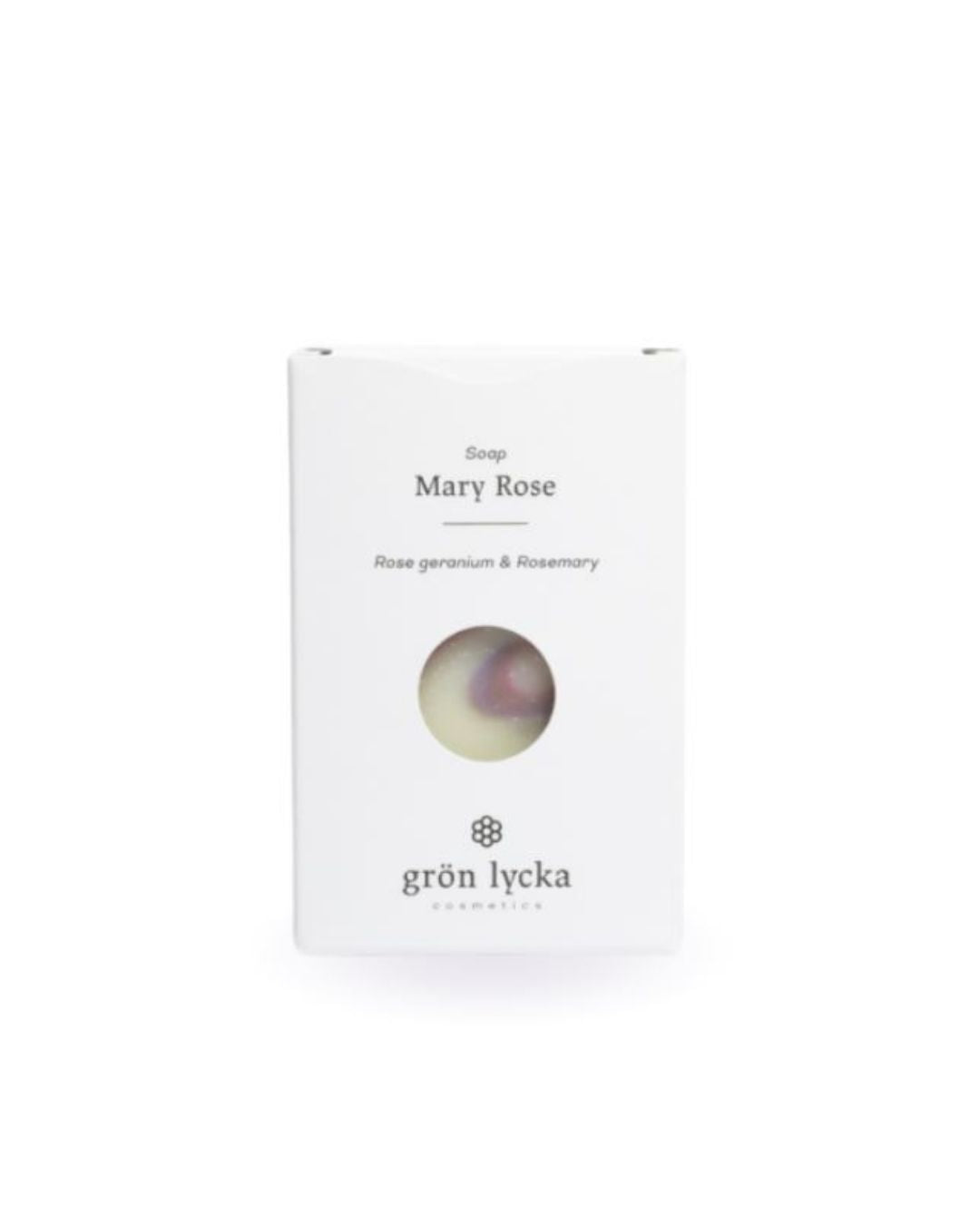 Mary Rose är en handgjord ekologisk tvål med en naturlig och mjuk doft av rosengeranium, lyft av friska toner från rosmarin och pepparmynta. Kombinationen ger en förförisk och uppiggande doftupplevelse – där myntans svala fräschör möter eteriska oljors harmoniserande och hudvårdande egenskaper.