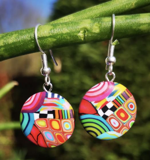 Örhängen av polymer och silvermetall bestående av en mosaik av canes, 100% handgjorda.